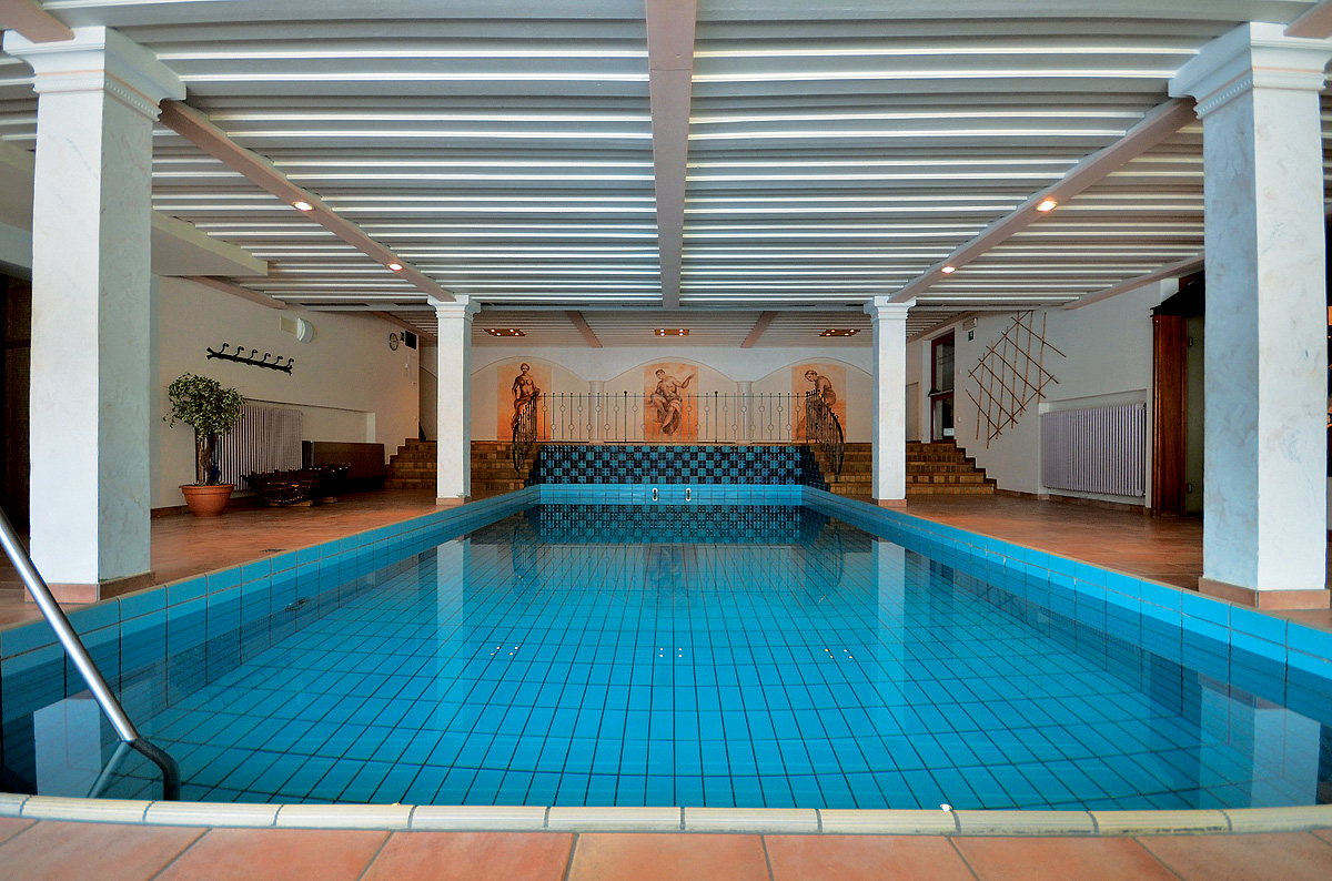 bazén 8 x 4 m s protiprúdom a ležadlami, sauna#, rodinná sauna, para#, infrakabína#, 2x multifunkčná sprcha#, Kneippov chodník#, relaxačný kútik s ležadlami#, senný kúpeľ#, masáže*#, kozmetické služby*#, posilňovňa