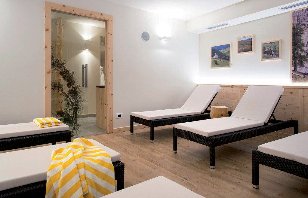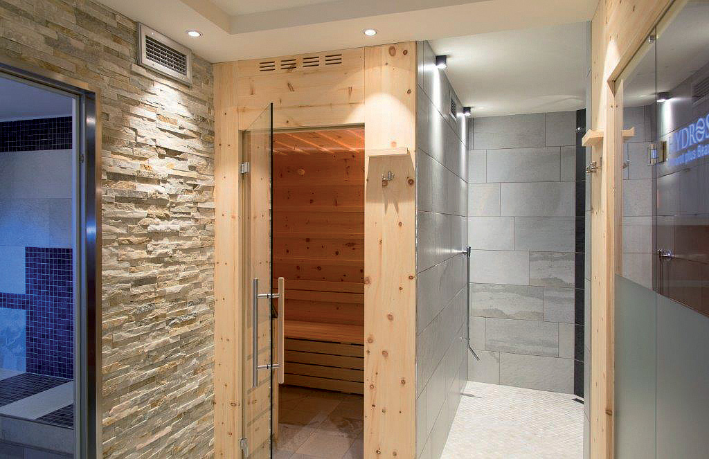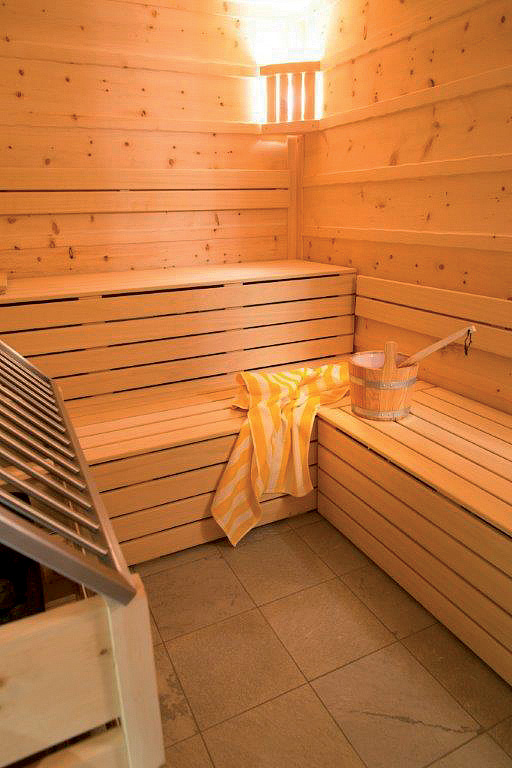 fínska sauna, para, infrakabína, relaxačný kútik s lehátkami