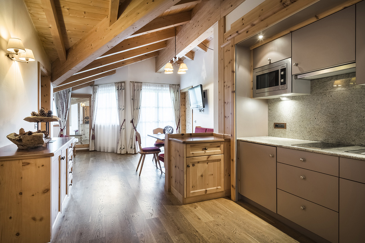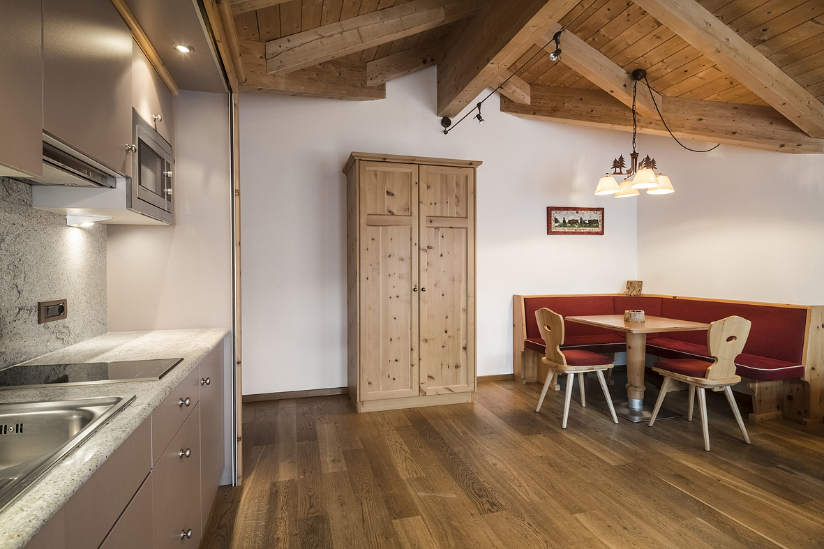 61 m² - 1 spálňa s manželskou posteľou a gaučom pre 1 osobu, 1 spálňa s 2 samostatnými lôžkami, obývacia izba s kuchynským kútom a rozkladacím gaučom pre 2 osoby, šatňa, sociálne zariadenie so sprchou alebo vaňou, balkón; apartmán je situovaný v podkroví
