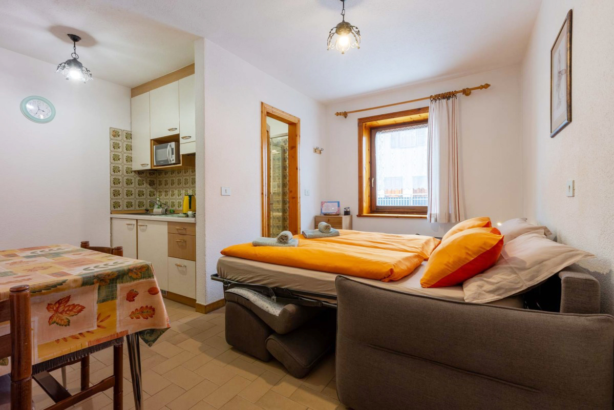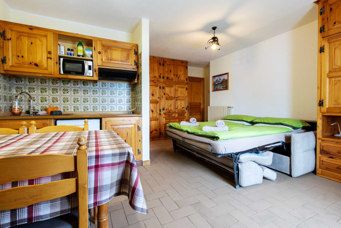 obývacia izba s kuchynským kútom a rozkladacím gaučom pre 2 osoby, sociálne zariadenie so sprchou