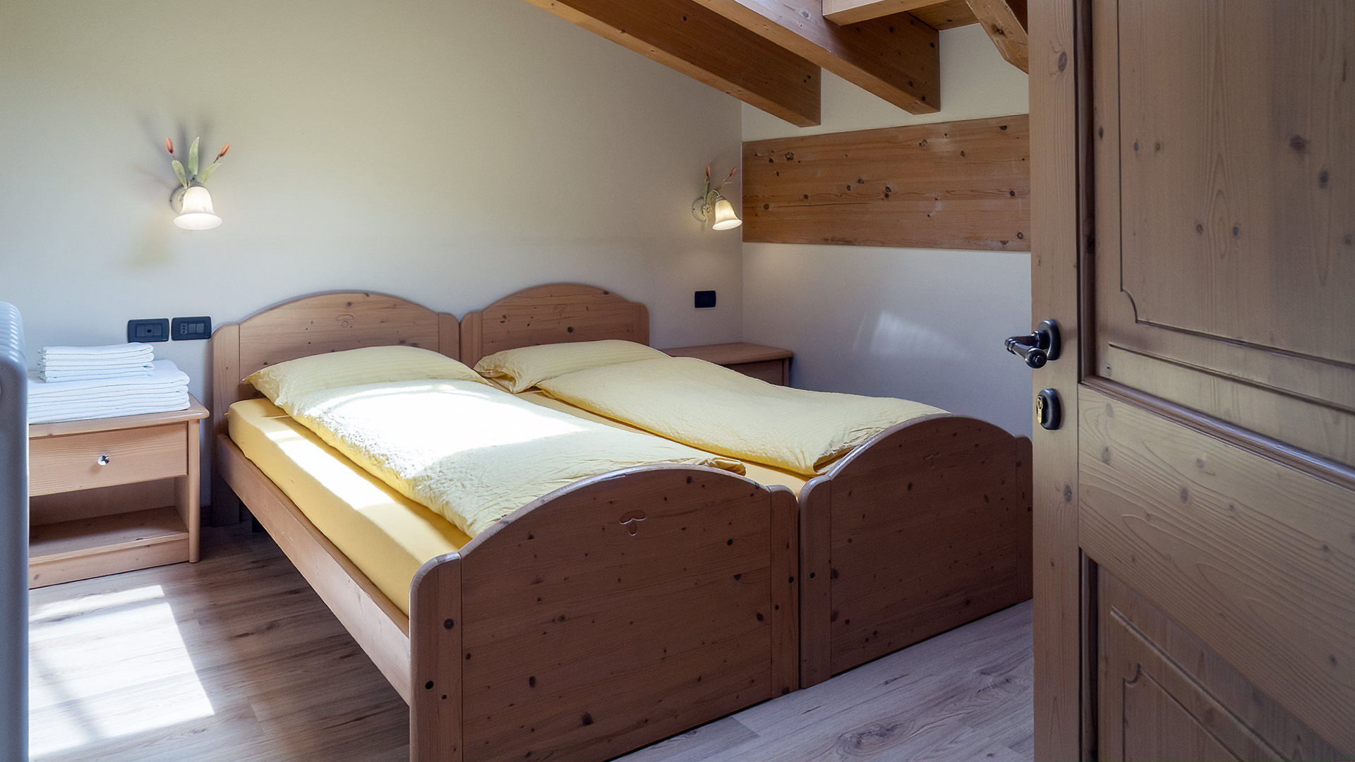 1 spálňa s manželskou posteľou, obývacia izba s kuchynským kútom a rozkladacím gaučom pre 2 osoby, sociálne zariadenie, spravidla balkón (1 apartmán v podkroví bez balkóna)