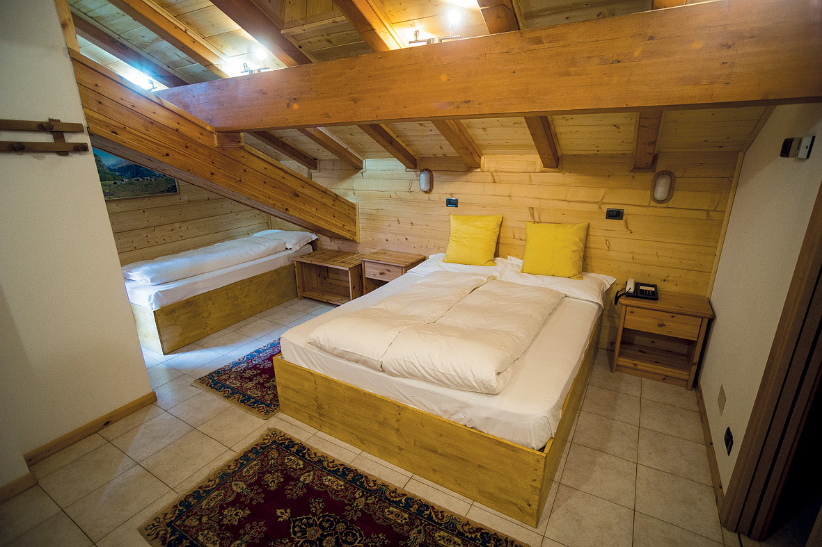 izba s 1 alebo 2 samostatnými lôžkami alebo manželskou posteľou a prípadne 1 alebo 2 ďalšími samostatnými lôžkami alebo poschodovou posteľou, sociálne zariadenie spravidla so sprchou, spravidla balkón