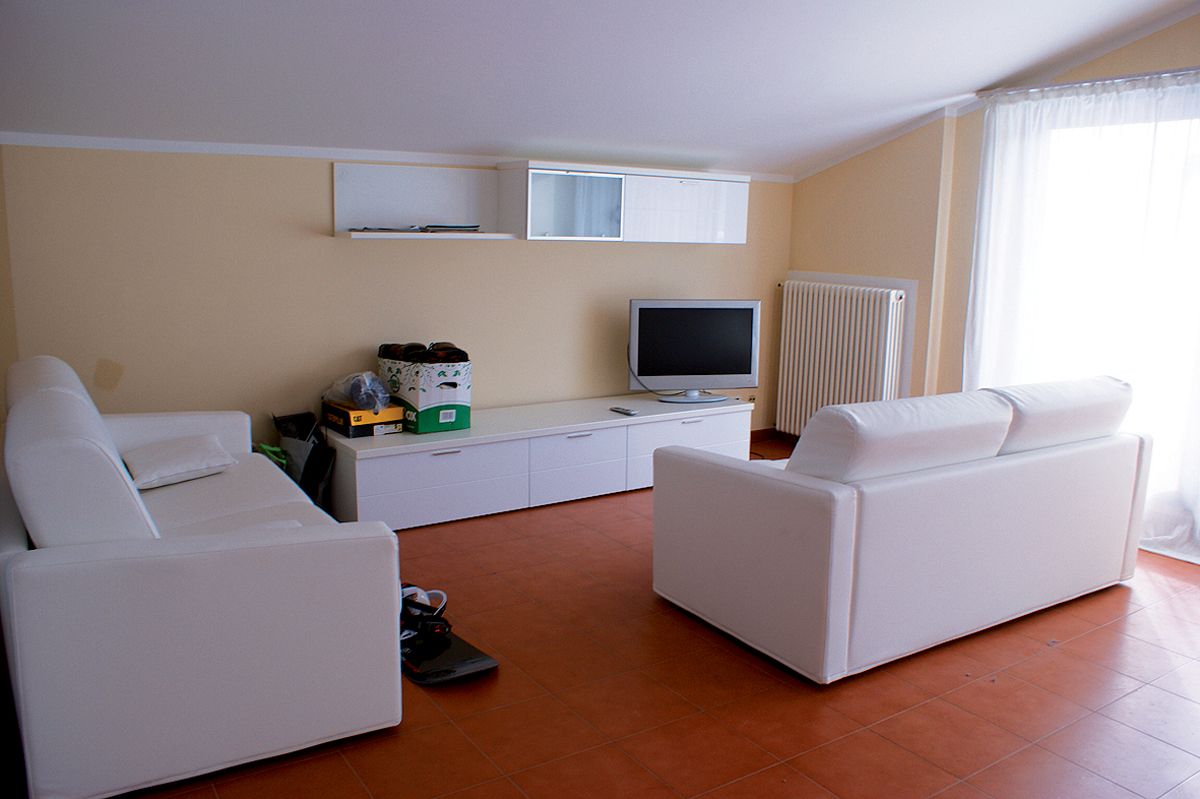 90 m² - veľmi priestranná obývacia izba s kuchynským kútom a sedacou súpravou, skriňou čiastočne oddelená spálňa s 4 samostatnými lôžkami a rozkladacím gaučom pre 2 osoby, 2x sociálne zariadenie, balkón; bez garážového státia