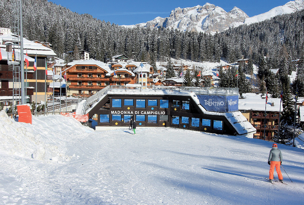 Innsbruck, Brenner, Bolzano, diaľničný výjazd S. Michele / Mezzocorona, Mezzolombardo, Cles, Malé, Dimaro, Folgarida, Madonna di Campiglio, Pinzolo