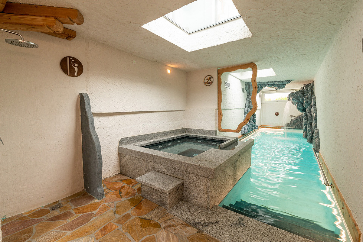 šport a relaxácia - menší bazén s umelým vodopádom, fínska sauna#, bio sauna#, aromatické sprchy#, ľadová jaskyňa#, masáže*, relaxačná zóna s lehátkami#, kozmetické služby*, vonkajšia spa zóna: vírivka# až pre 4 osoby, sauna#; služby označené # môžu využívať deti až od 16 rokov