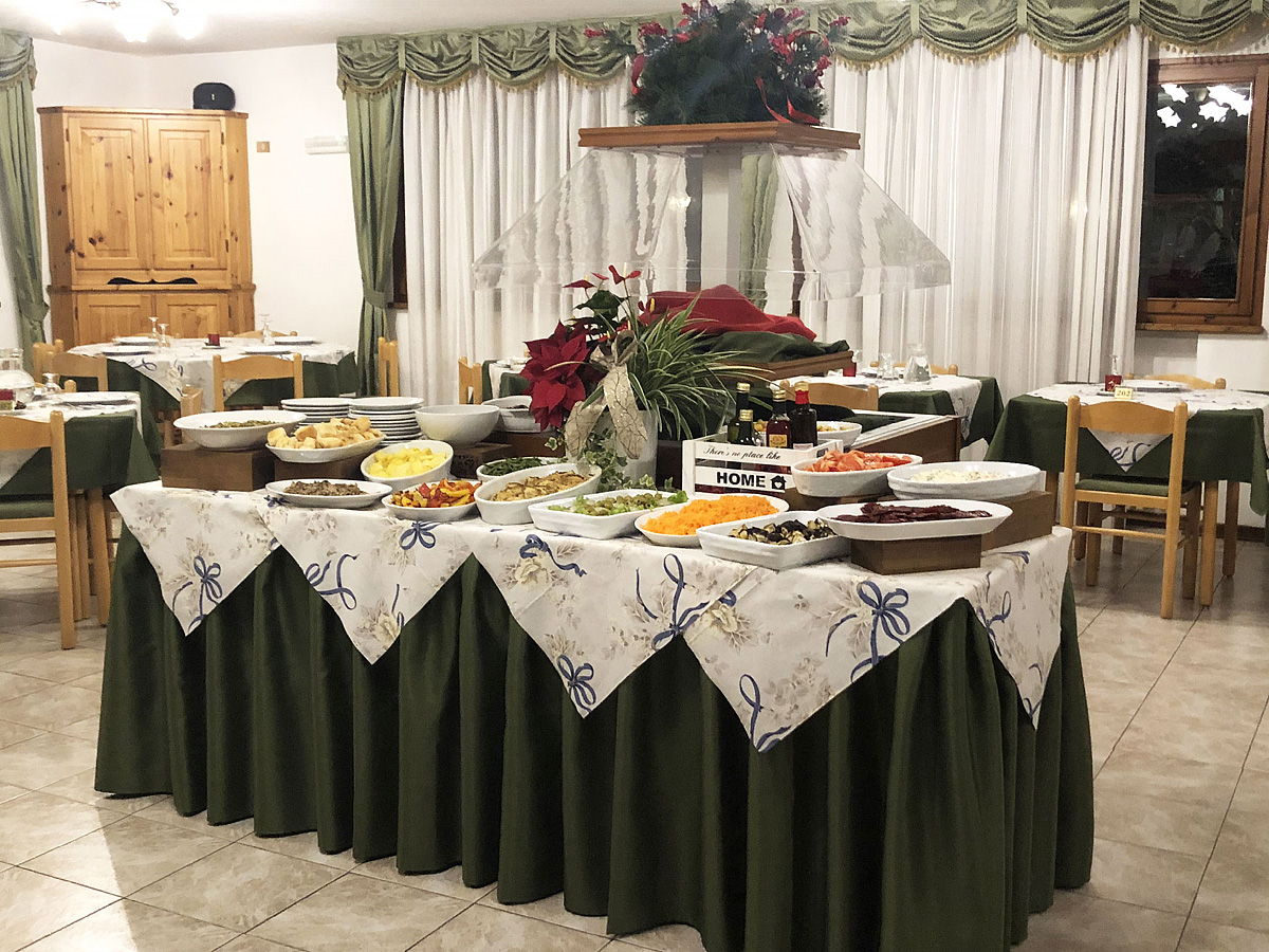večera - servírované menu: teplé predjedlo a hlavnéjedlo s prílohou, šalátový bufet, servírovaný dezert či ovocie, nápoje za poplatok