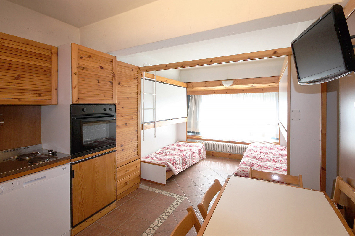 bilo 4/5 - 1 spálňa s poschodovou posteľou či manželským lôžkom pre 2 osoby a prípadne 1 samostatným lôžkom, obývacia izba s kuchynským kútom a skriňovou vyklápacou manželskou posteľou či rozkladacím gaučom pre 2 osoby či poschodovou posteľou a prípadne 1 samostatným rozkladacím lôžkom, sociálne zariadenie s vaňou