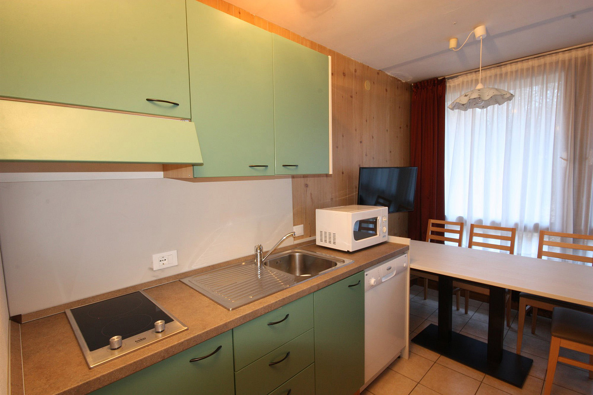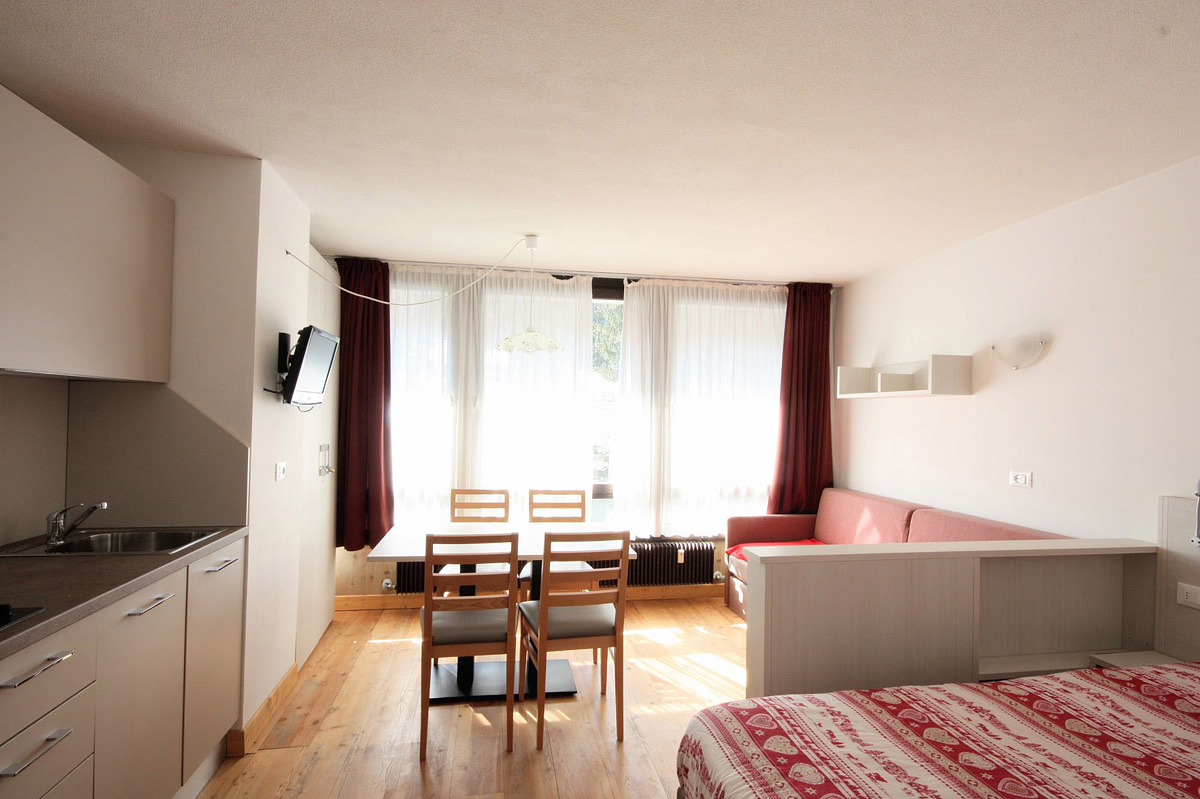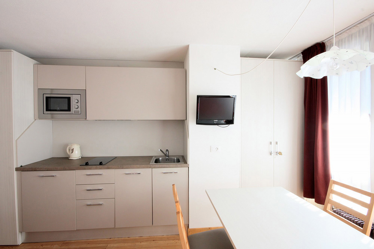 35 m² - 1 spálňa s manželskou posteľou, 2 spálne s 2 samostatnými lôžkami, obývacia izba s kuchynským kútom a rozkladacím gaučom pre 2 osoby, sociálne zariadenie; napriek tomu, že môže byť počet lôžok vyšší, maximálna povolená obsadenosť apartmánu je 6 osôb