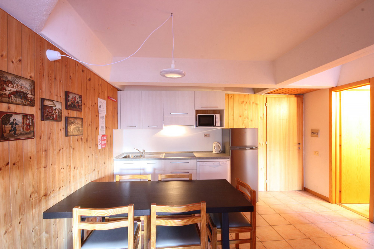 trilo 6 - 1 spálňa s manželskou posteľou či rozkladacím gaučom pre 2 osoby, 1 malá spálňa bez okna s poschodovou posteľou, obývacia izba s kuchynským kútom a rozkladacím gaučom pre 2 osoby či prípadne manželským lôžkom, sociálne zariadenie so sprchou či vaňou, balkón; izby sú oddelené drevenými prepážkami; niektoré apartmány sú dvojpodlažné