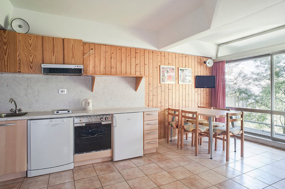 mono 2+2 - obývacia izba s kuchynským kútom, rozkladacím gaučom typu zásuvka pre 2 osoby či manželskou posteľou a 2 rozkladacími lôžkami či poschovodou posteľou v niektorých prípadoch oddelenou drevenou zástenou, sociálne zariadenie so sprchou alebo vaňou, balkón; maximálna odporúčaná obsadenosť apartmánu 2 dospelí a 2 deti do 10 rokov