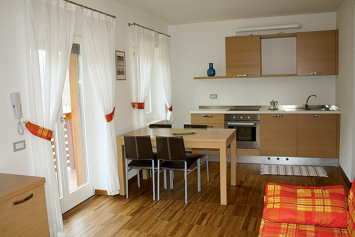 trilo 6 - 45 až 50 m² - 1 spálňa s manželskou posteľou, 1 spálňa s manželskou posteľou alebo 2 samostatnými lôžkami, obývacia izba s kuchynským kútom a rozkladacím gaučom pre 2 osoby, sociálne zariadenie, balkón