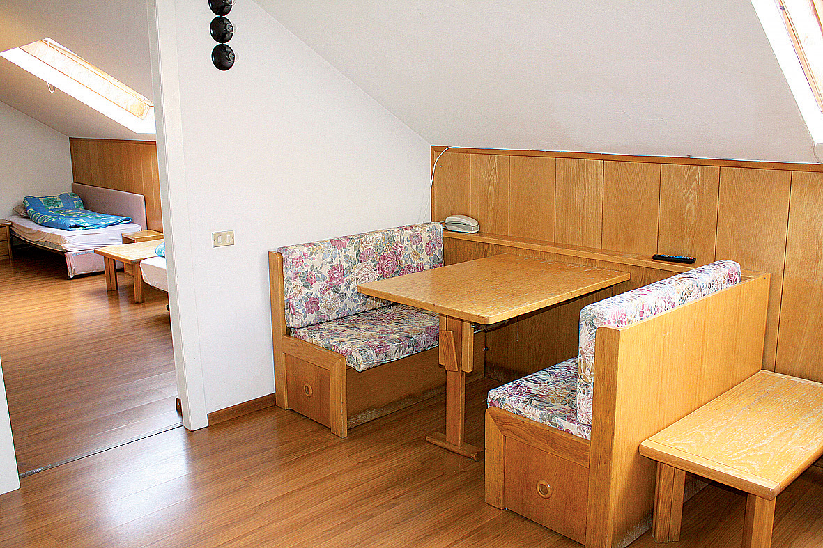 20 m² - obývacia izba s manželskou posteľou, samostatná kuchynka, sociálne zariadenie; apartmány sú situované v podkroví a majú spravidla len strešné okno
