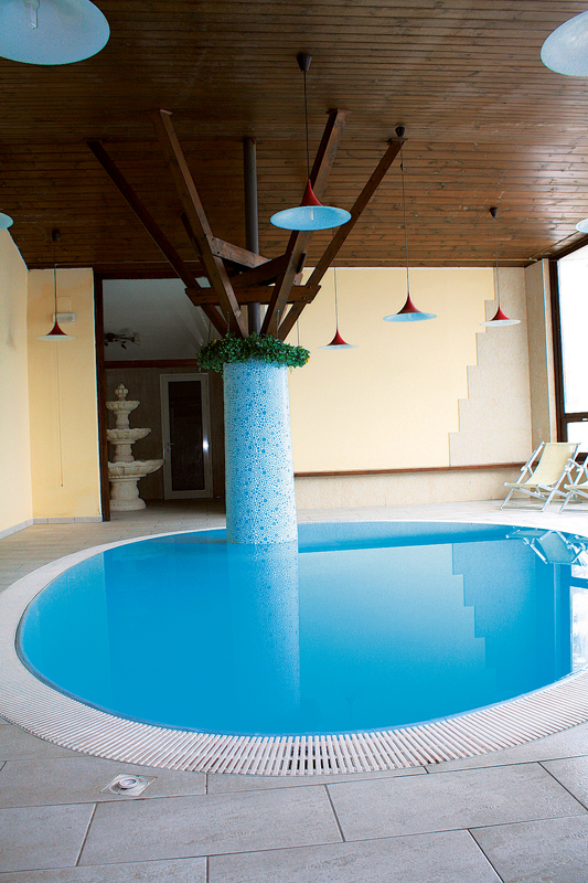 bazén# 6 x 4 m s protiprúdom, sauna#, para#, multifunkčná sprcha#; služby označené # majú vstup za poplatok 10 € / osoba a je nutné ho vopred rezervovať; služby označené # (s výnimkou bazéna) môžu využívať deti až od 18 rokov