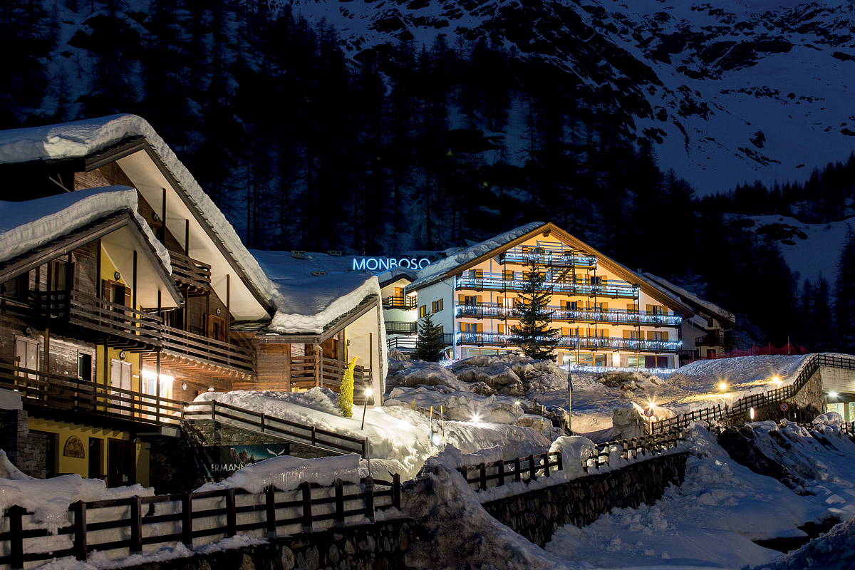 Gressoney La Trinité - lokalita Staffal, centrum / Staffal - 600 m, skiareál Monterosa Ski - 450 m