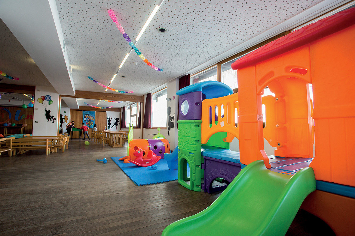 recepcia / malá lobby / bar, reštaurácia, spoločenská miestnosť s TV sat., slnečná terasa, miestnosť pre deti, animačné programy pre deti (od 4 do 15 rokov; v talianskom a anglickom jazyku; v prevádzke v čase obeda a večere), wi-fi pripojenie k internetu v spoločných priestoroch, úschovňa lyží a lyžiarskych topánok, vyhradené parkovisko, garážové miesto*