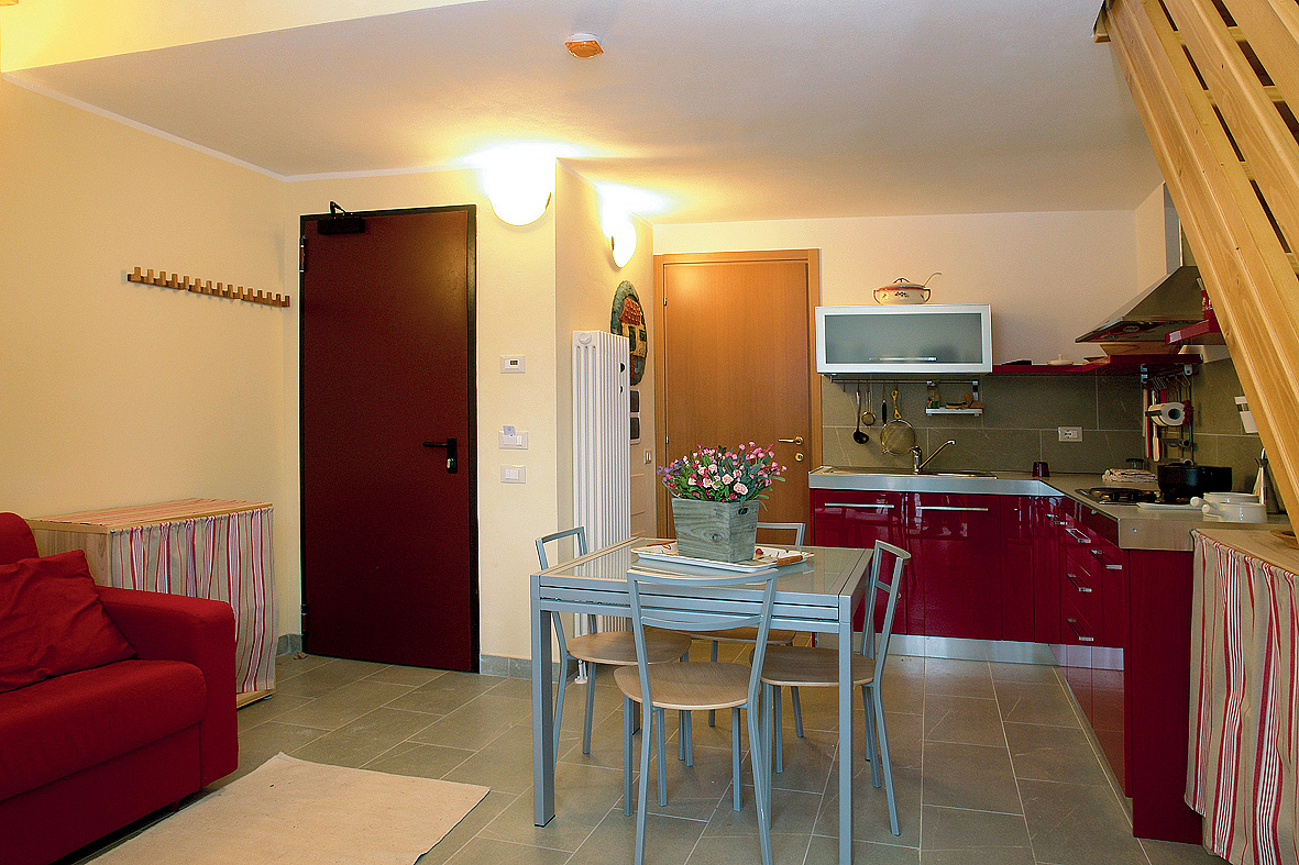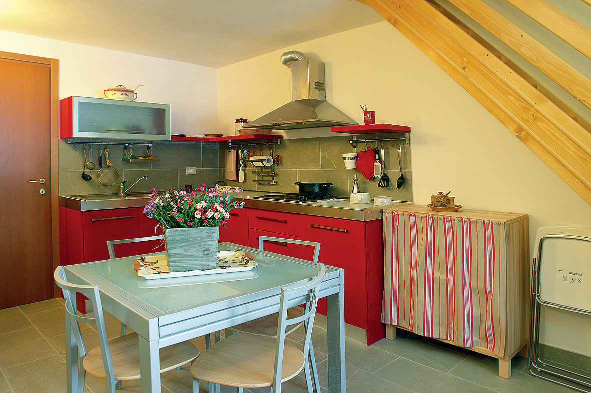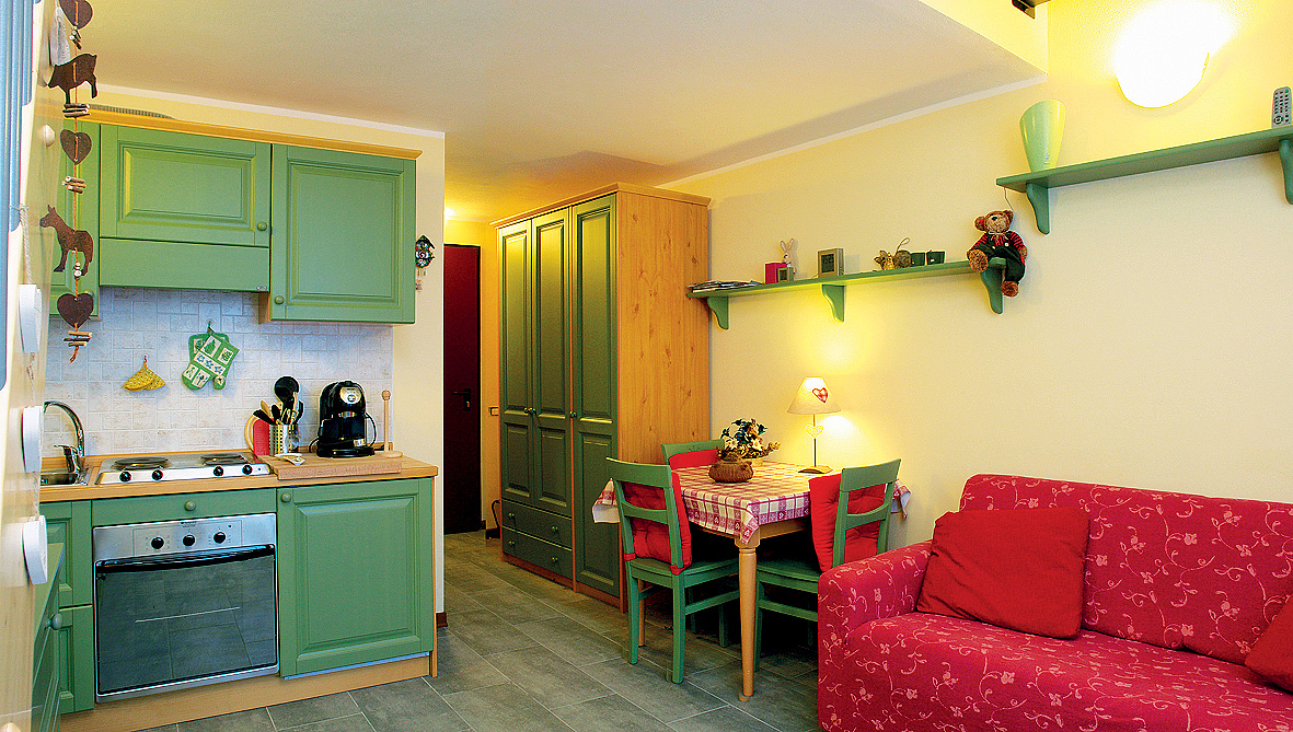 18 m² - obývacia izba s kuchynským kútom a rozkladacím gaučom pre 2 osoby, sociálne zariadenie, balkón alebo vstup na záhradu