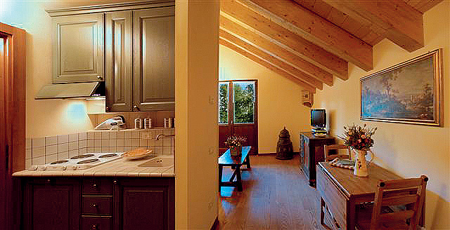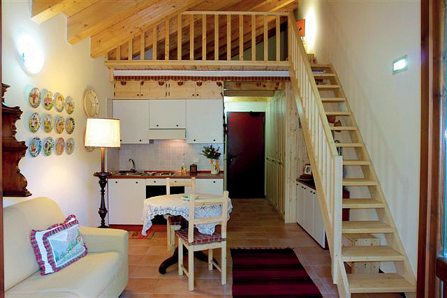 18 m² - obývacia izba s kuchynským kútom, manželskou posteľou a 1 samostatným lôžkom alebo 3 samostatná lôžka, sociálne zariadenie, balkón či vstup na záhradu