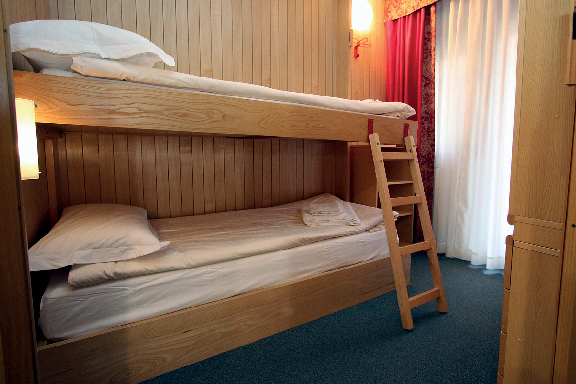 35 m² - 1 spálňa s manželskou posteľou so šírkou 150 cm, 1 spálňa s manželskou posteľou či 2 samostatnými lôžkami či poschodovou posteľou, obývacia izba s malým kuchynským kútom a gaučom pre 1 osobu, sociálne zariadenie, balkón; napriek tomu, že je k dispozícií 5 lôžok, maximálna obsadenosť sú 4 osoby