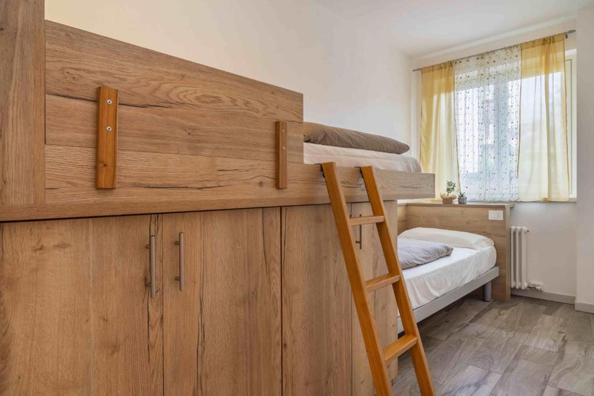 trilo 4/5/6 deluxe - 60 m² - 1 spálňa s manželskou posteľou s oddeliteľnými lôžkami, spálňa s poschodovou posteľou, obývacia izba s kuchynským kútom a rozkladacím gaučom pre 2 osoby, sociálne zariadenie, francúzske okno