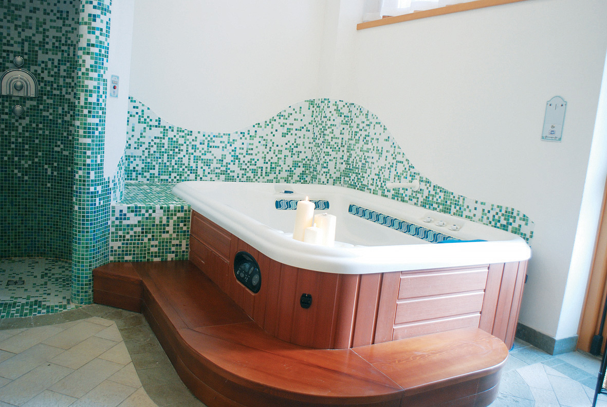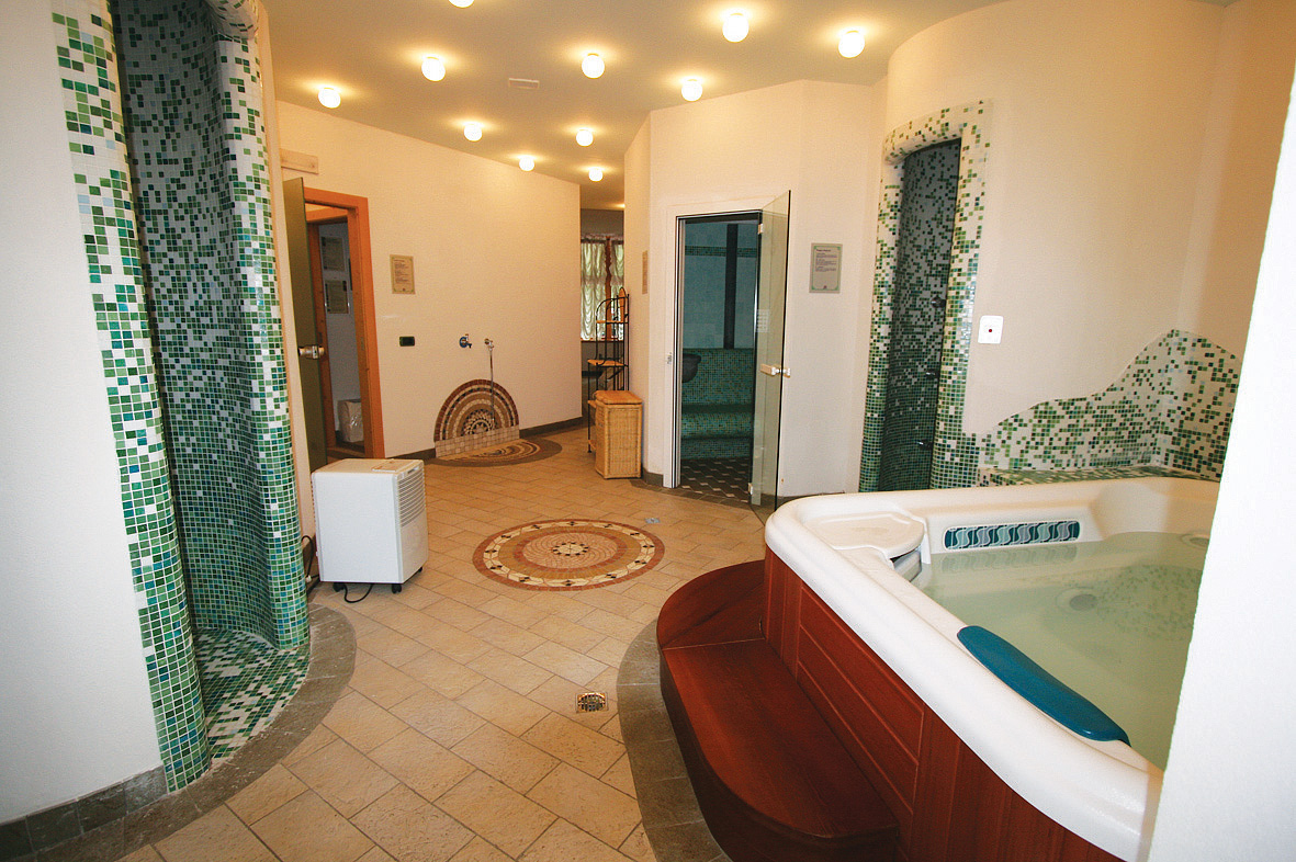 vírivka#* až pre 2 osoby, sauna#*, para#*, multifunkčná sprcha#*, horizontálne solárium#*, malý relaxačný kútik#*, posilňovňa; služby označené # môžu využívať deti až od 14 rokov -