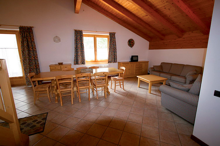 bilo 4 - 75 m² - 1 spálňa s manželskou posteľou s oddeliteľnými lôžkami, obývacia izba s kuchynským kútom, neuzatvorené zvýšené poschodie v rámci obývacej izby s 2 samostatnými lôžkami, sociálne zariadenie