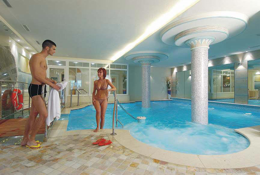 bazén s vírivkou, umelým vodopádom a protiprúdom, fínska sauna#, aroma para#, vitárium#, chromoterapia#, Kneippov chodník#, relaxačný kútik# s lehátkami, masáže*, posilňovňa; v rámci relaxačného centra sú zadarmo ponúkané tiež bylinkové čaje; služby označené # môžu využívať deti až od 16 rokov
