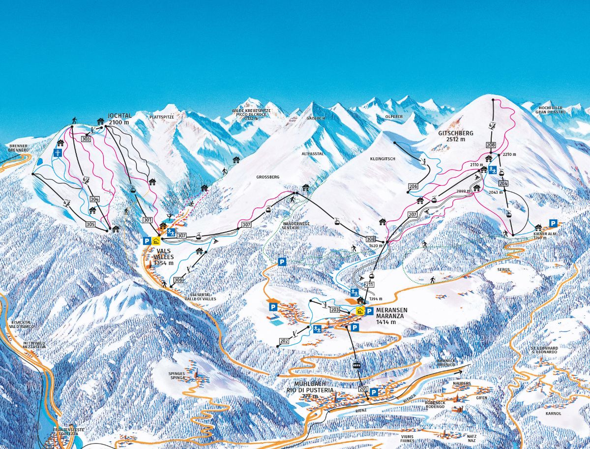 Stredisko Gitschberg Jochtal je tvorené dvojicou prepojených areálov a patrí medzi najrýchlejšie sa rozvíjajúce v celých Dolomitoch. Vďaka tomu, že disponuje zjazdovkami všetkých úrovní je ideálnou volbou pre skúsených lyžiarov ale aj pre rodiny s deťmi.