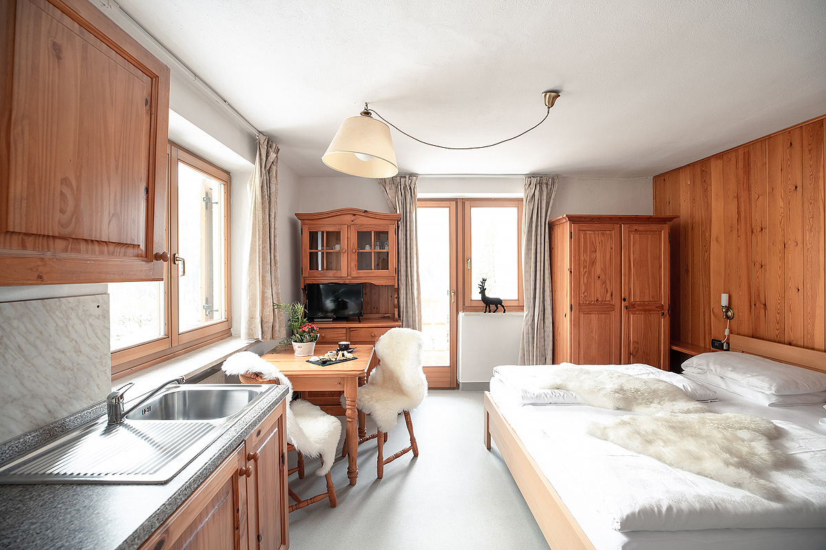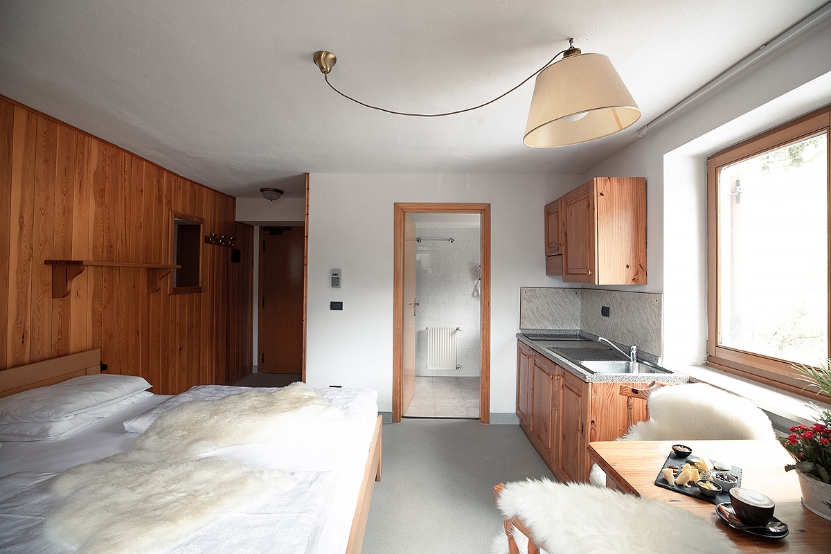 bilo 2/3/4 Standard - 35 m² - 1 spálňa s manželskou posteľou, obývacia izba s kuchynským kútom a 1 samostatným lôžkom či rozkladacím gaučom pre 2 osoby, sociálne zariadenie