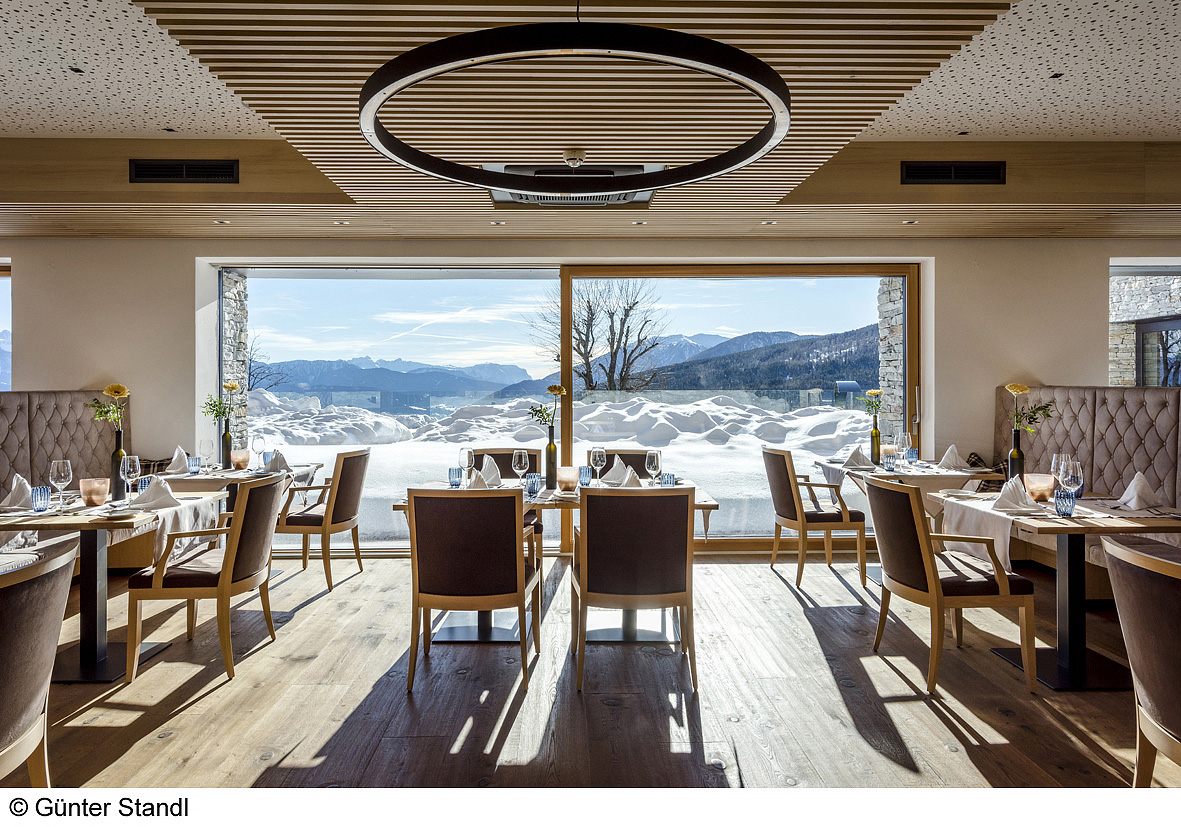 vybavenosť a služby - recepcia / veľká lobby, reštaurácia vyhradená pre hotelových hostí, bar, slnečná terasa s posedením a ležadlami, veľká záhrada s posedením a ležadlami, 380 m² detská herňa Skyland, wi-fi pripojenie k internetu, úschovňa lyží, výťah, vyhradené parkovisko, hotelový miniskibus