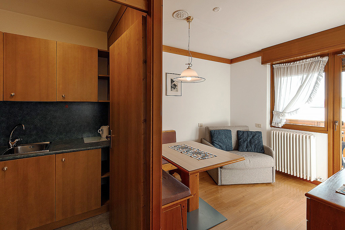20 m² - obývacia izba s rozkladacím gaučom pre 2 osoby a prípadne 1 samostatným lôžkom, samostatná kuchynka, predsieň (len pri niektorých apartmánch), sociálne zariadenie so sprchou alebo vaňou, balkón