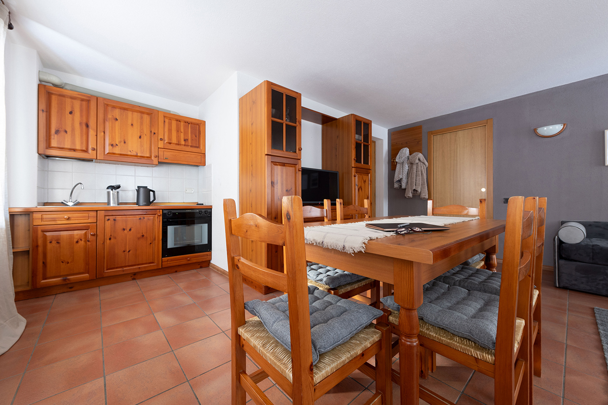 1 spálňa s manželskou posteľou, obývacia izba s kuchynským kútom a rozkladacou pohovkou pre 2 osoby alebo 2 rozkladacími pohovkami pre 1 osobu, sociálne zariadenie so sprchou; apartmán sa nachádza na prízemí