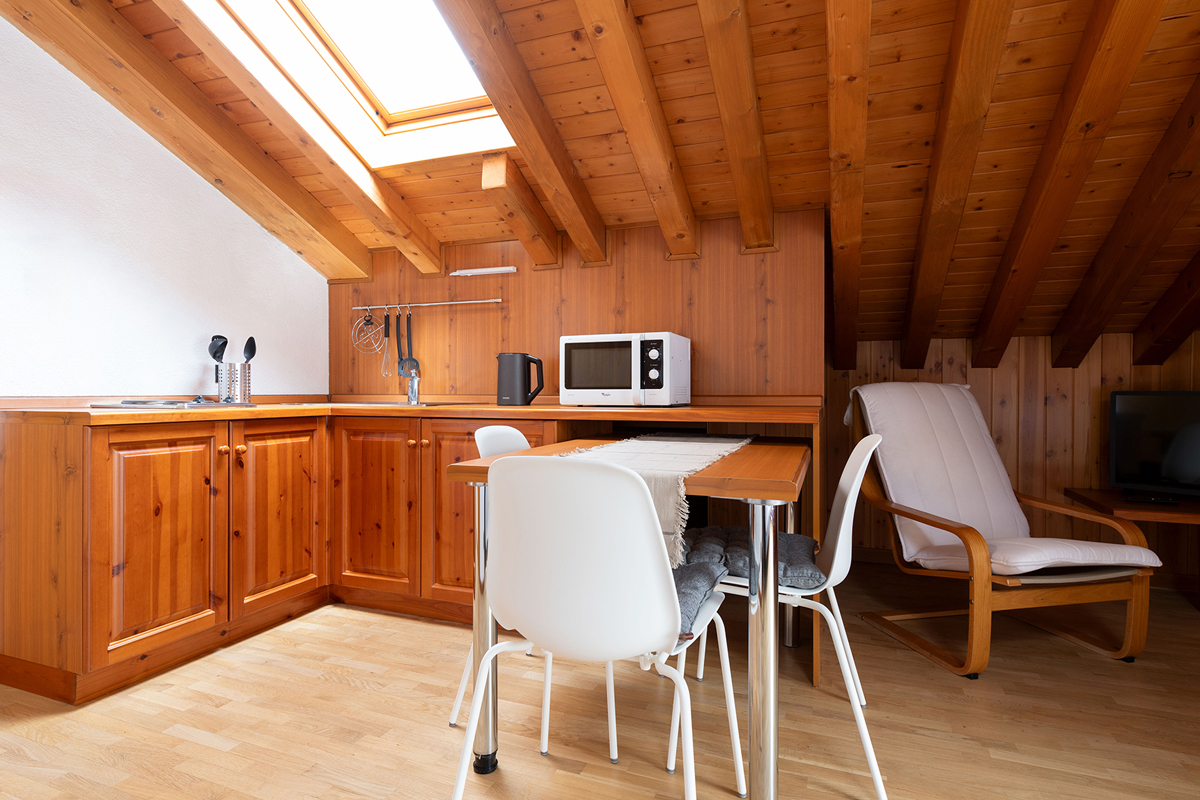 obývacia izba s kuchynským kútom, manželskou posteľou a 1 rozkladacím lôžkom, sociálne zariadenie so sprchou; apartmán sa nachádza na úrovni vchodu