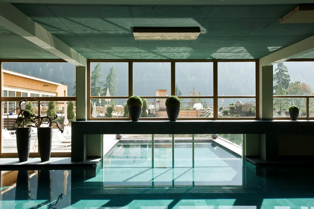 bohato vybavené wellness centrum: termálny vnútorný bazén s vonkajšou časťou 17 x 5 m a teplotou 30 °C, vírivka, sauny, panoramatická vonkajšia sauna, para, soľná jaskyňa, multifunkčná sprcha, relaxačný kútik s ležadlami a nápojmi (čaj), balančné ležadlá, vaňa so studenou vodou, vonkajšia relaxačná zóna, posilňovňa, malá telocvičňa na jogu, masáže*, kozmetické a estetické služby*, úschovňa bicyklov