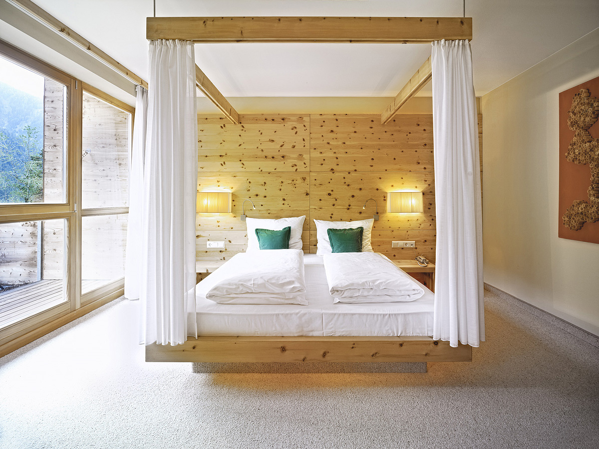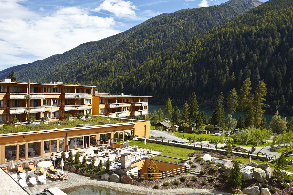 • ocenený eco hotel z prírodných materiálov s výhľadom na hory a jazero