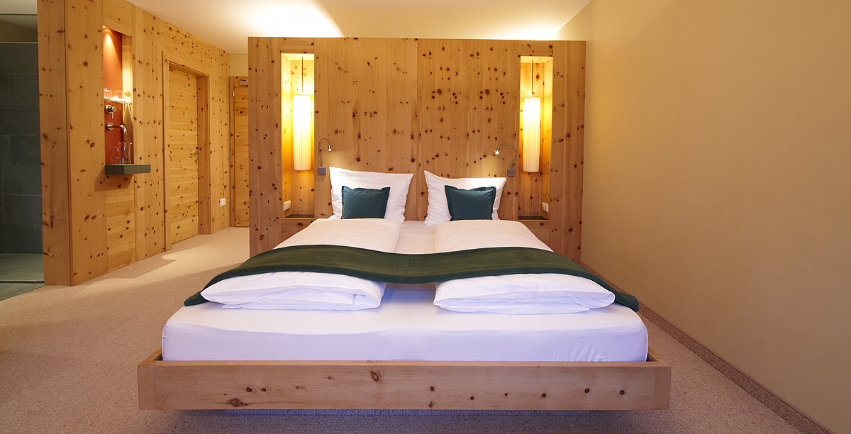 Life Balance suite 2/3/4/5 - 90 m² - 1 spálňa s manželskou posteľou, 1 spálňa s 2 oddelenými lôžkami, možnosť prístelky ako 5. lôžka, obývacia izba, šatňa, privátna vonkajšia sauna, Kneipp sprcha, sociálne zariadenie so sprchou a vaňou, 2 umývadlá, terasa 25 m²