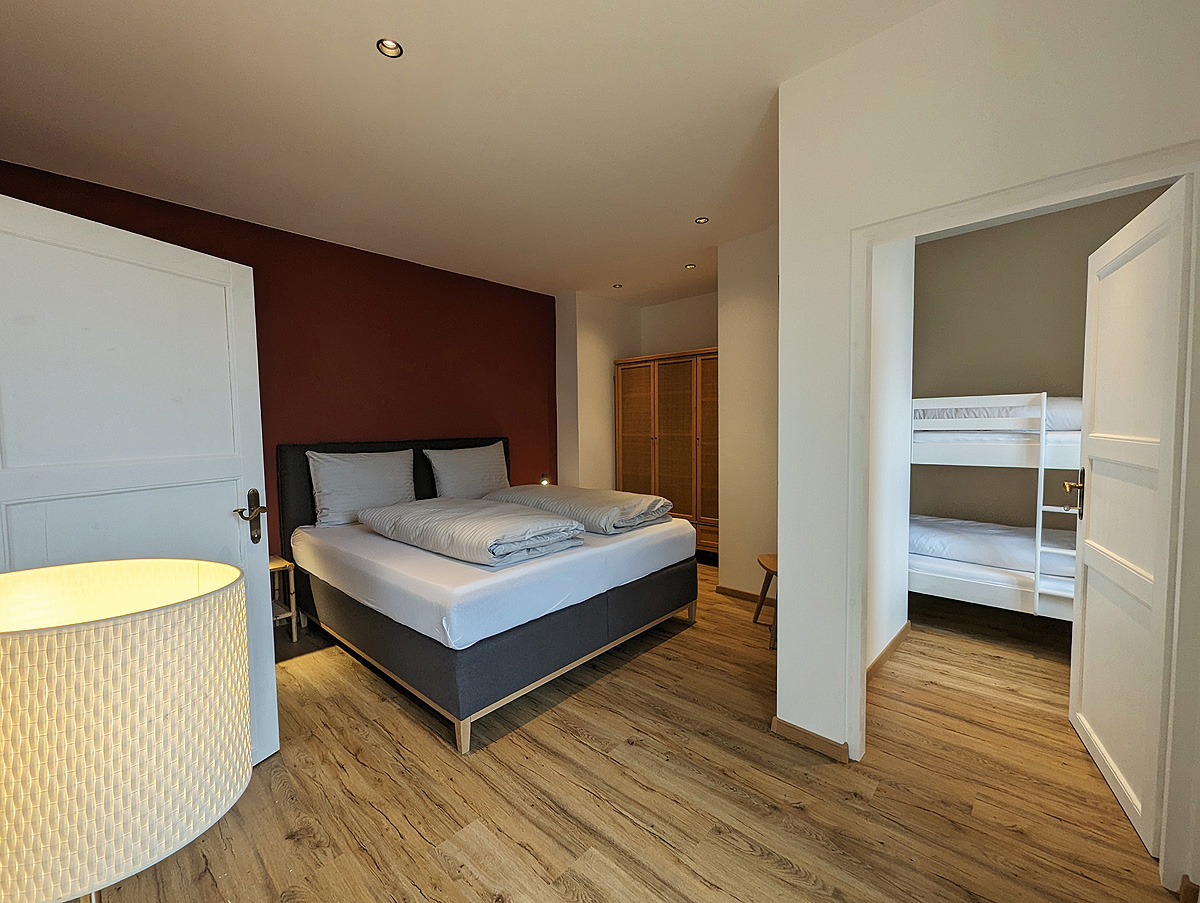 trilo 2+2 Dunhill - 60 m² - 1 spálňa s manželskou posteľou a oddeleným malým priestorom s poschodovou posteľou pre 2 osoby, obývacia izba s gaučom, kuchyňa s jedálenským stolom, priestranné sociálne zariadenie so sprchou, malý balkón; apartmán sa nachádza v samostatne stojacej budove