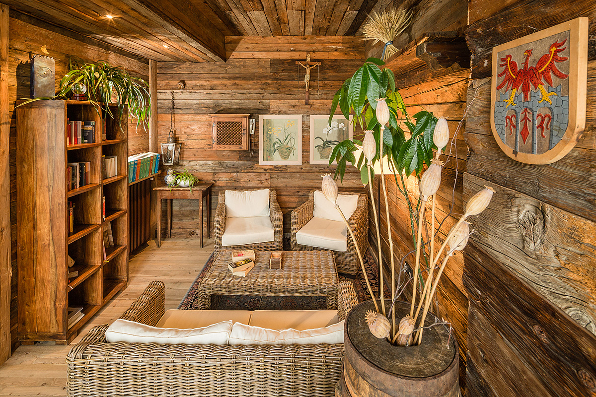 rodinný hotel v duchu južného Tirolska z prírodných materiálov a s krásnym výhľadom na hory