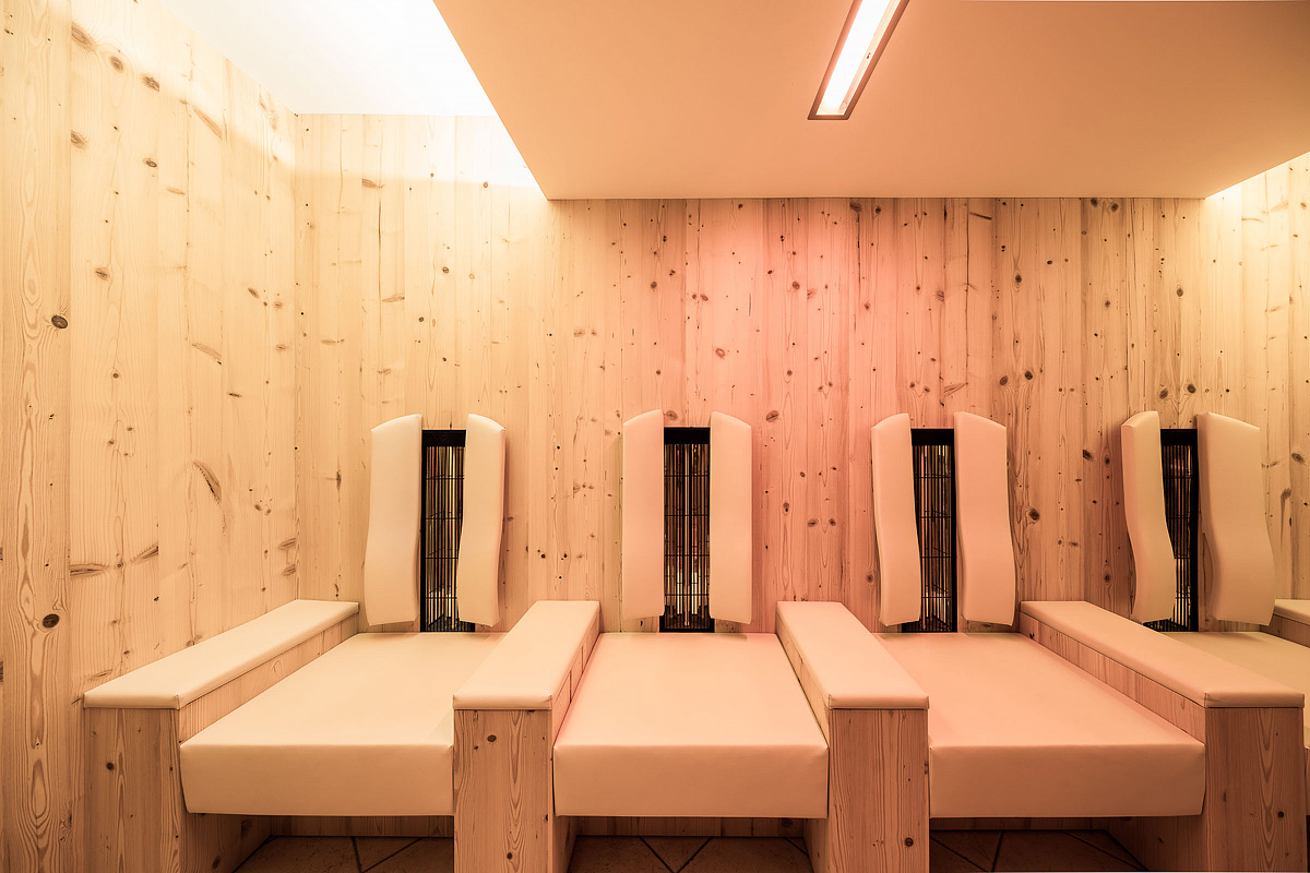 vírivka*, fínska sauna, para, infrakabína, ľadová fontána, multifunkčná sprcha, relaxačný kútik s lehátkami, Kneippov chodník, masáže a kozmetické služby*