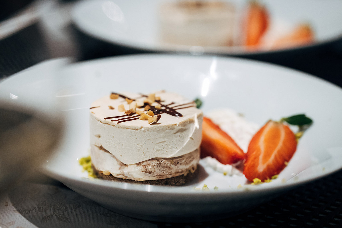 servírované 4chodové menu s výberom z 2 hlavných jedál s prílohou, studené a teplé predjedlá, dezerty, šalátový bufet, nápoje za príplatok