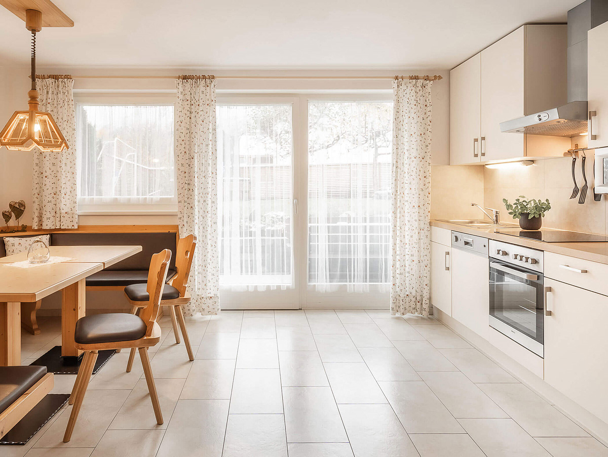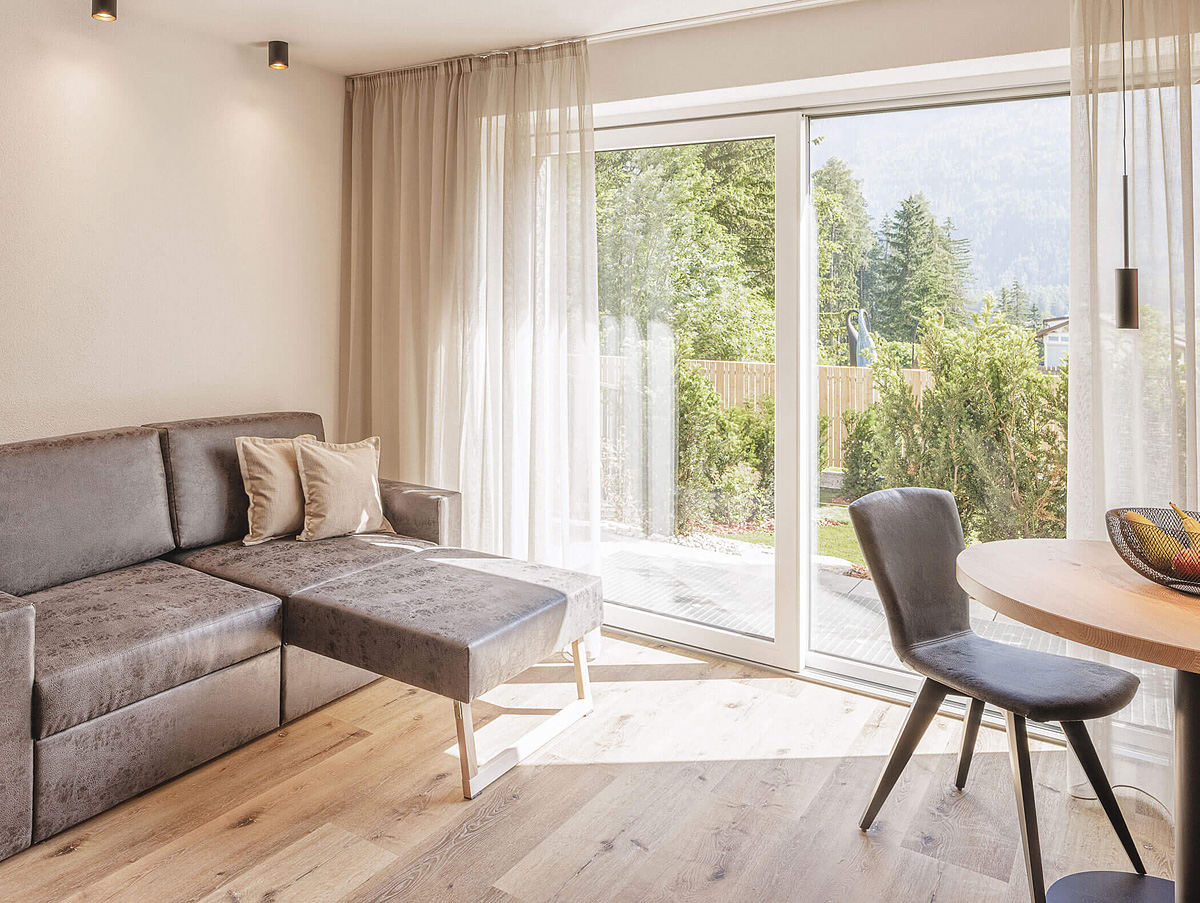 quadrilo 6 Alpenblick Dependance - 73 m² - 2 spálne s manželskou posteľou, 1 spálňa s poschodovou posteľou, obývacia izba s kuchynským kútom, 2x sociálne zariadenie, balkón, záhrada