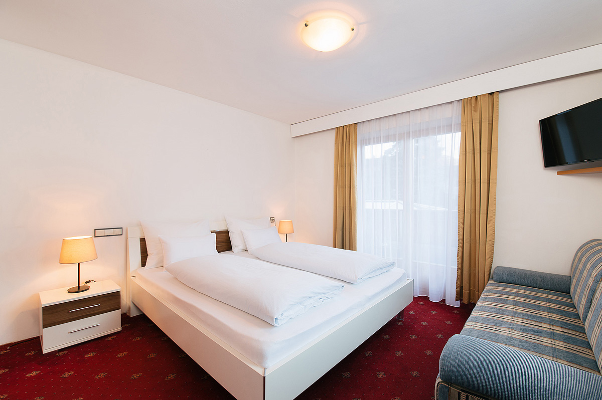 20 až 25 m² - izba s manželskou posteľou a rozkladacím gaučom pre 1 osobu alebo 2 deti do nedovŕšených 14 rokov, sociálne zariadenie, balkón