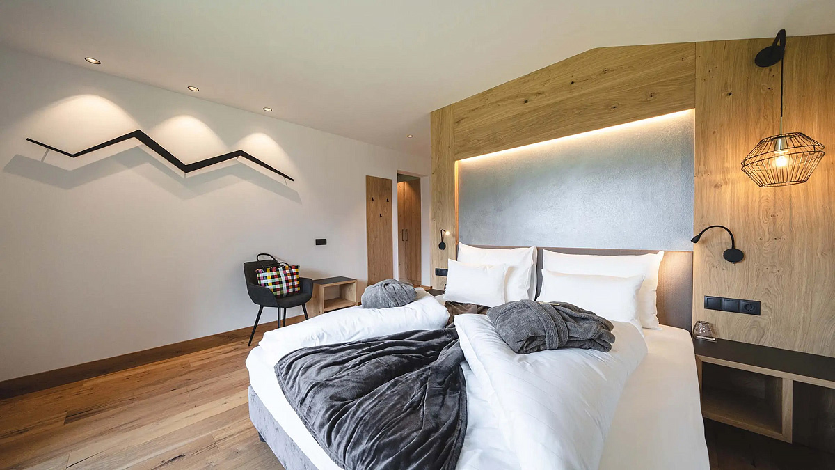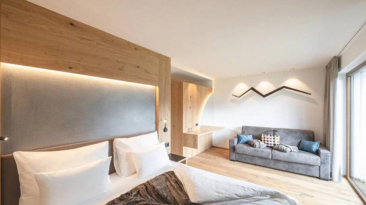 40 až 45 m² - izba s manželskou posteľou, izba s poschodovou posteľou, sociálne zariadenie, balkón; 5. lôžko formou rozkladacieho gauča pre 1 osobu v izbe s manželskou posteľou alebo v izbe s poschodovou posteľou