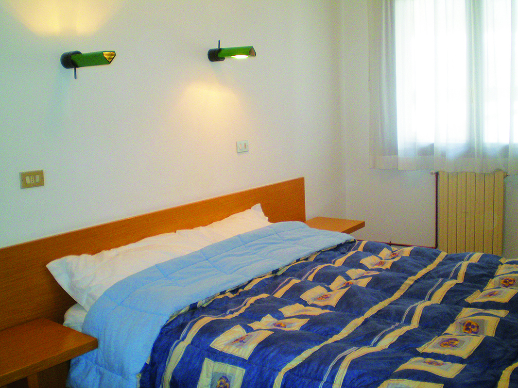 55 m² - 1 spálňa s manželskou posteľou, 1 spálňa s 2 samostatnými lôžkami (len v niektorých apartmánoch v rámci neuzavretého zvýšeného poschodia) či 1 malá spálňa s poschodovou posteľou (v niektorých apartmánoch oddelená len posuvnými dverami), obývacia izba s kuchynským kútom a atypickou výsuvnou manželskou posteľou, sociálne zariadenie so sprchou či vaňou, spravidla balkón, terasa či predzáhradka