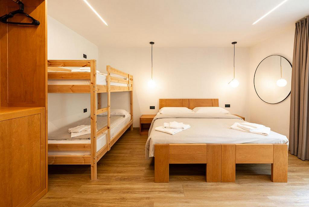 Standard 4 - izba s manželskou posteľou a poschodovou posteľou či rozkladacím gaučom pre 2 osoby, sociálne zariadenie so sprchou, balkón či prízemná terasa