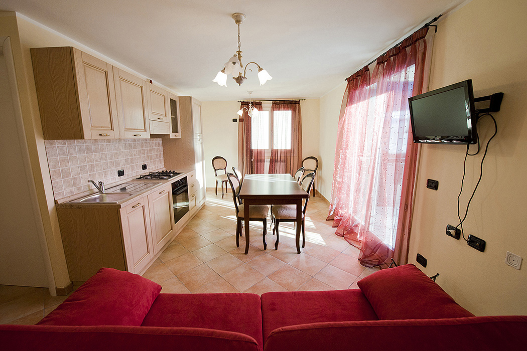50 m² - 1 spálňa s manželskou posteľou, obývacia izba s kuchynským kútom a rozkladacím gaučom pre 2 osoby (možný i typ "zásuvka"), sociálne zariadenie, balkón