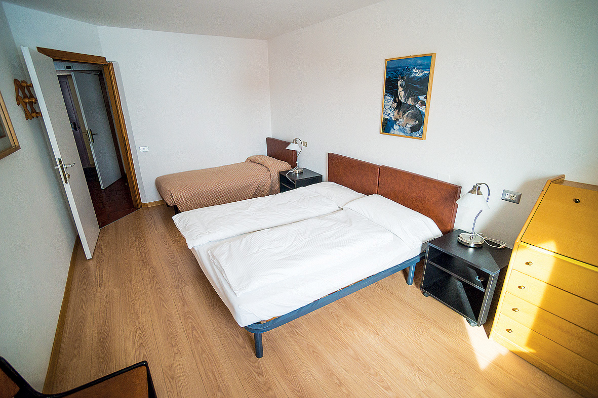 trilo 6/7 typ B - 65 m² - 1 spálňa s manželskou posteľou a prípadne 1 samostatným lôžkom, 1 spálňa s manželskou posteľou s oddeliteľnými lôžkami, obývacia izba s kuchynským kútom a rozkladacím gaučom pre 2 osoby, 2x sociálne zariadenie