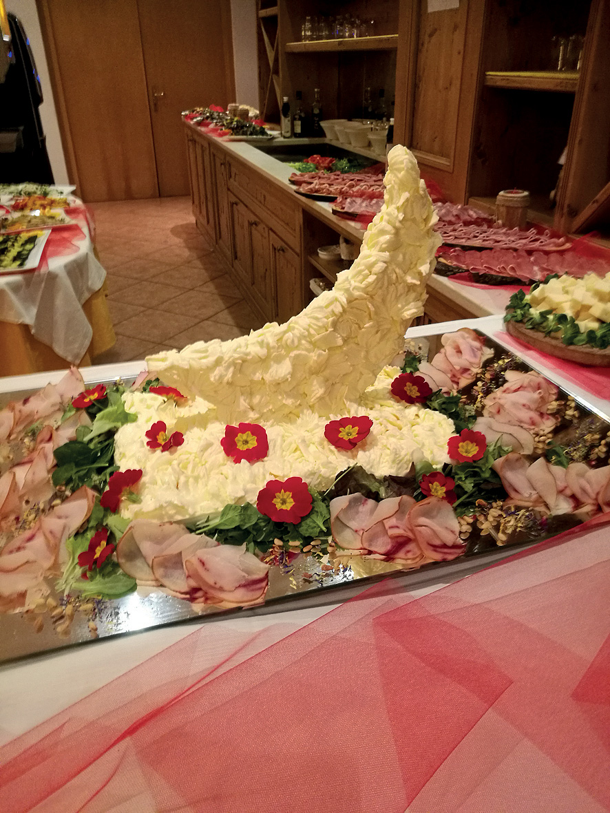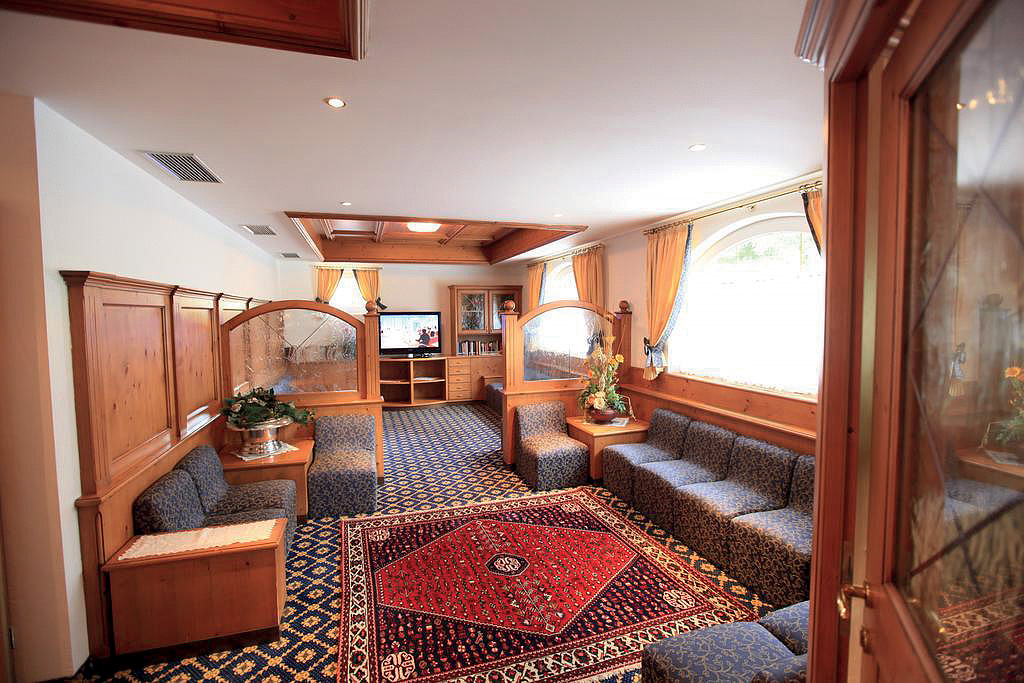 vybavenosť a služby - recepcia / veľká lobby s pecou a TV / bar / wi-fi pripojenie k internetu, reštaurácia s pecou, bohatá vinotéka (cca 100 druhov vína v cenách za fľašu od 15 € až do 100 - - ), detský kútik, úschovňa lyží a lyžiarok, výťah, vyhradené parkovisko