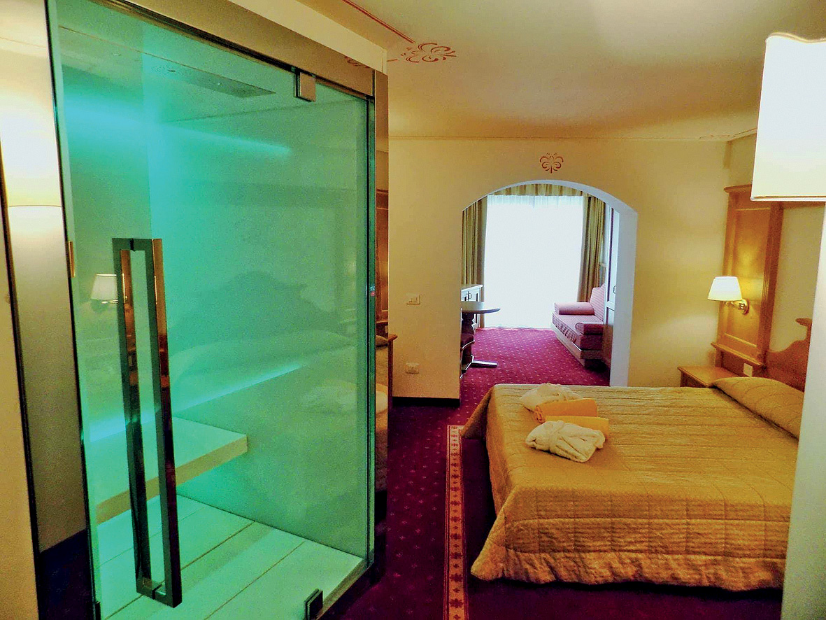 Suite Spa 3/4 - 31 m² - izba s manželskou posteľou, izba s 1 alebo 2 samostatnými lôžkami alebo rozkladacím gaučom pre 1 alebo 2 osoby, sociálne zariadenie (niektoré izby s vaňou), balkón, privátna sauna; izby môžu byť oddelené len čiastočnou stenou