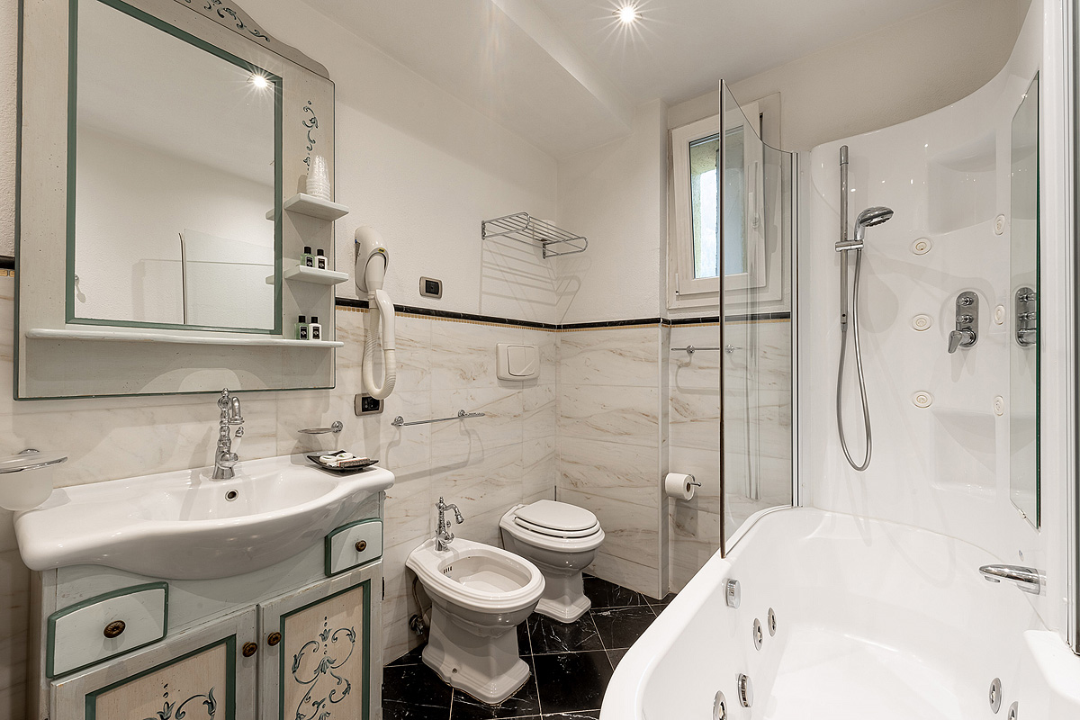 Prestige 2/3/4 - 20 až 23 m² - izba s manželskou posteľou s oddeliteľnými lôžkami a prípadne rozkladacím gaučom či kreslom na lôžko pre 1 osobu či rozkladacím gaučom pre 2 osoby s veľkosťou 1,5 bežného lôžka (vhodné pre 1 dospelú osobu a dieťa do 13 rokov či 2 deti do 13 rokov), sociálne zariadenie s vírivou vaňou či masážnou sprchou, balkón