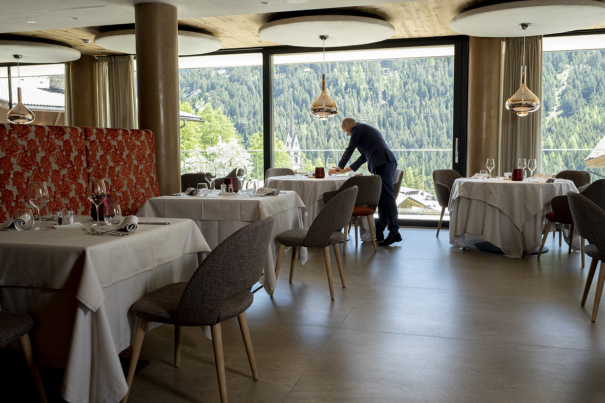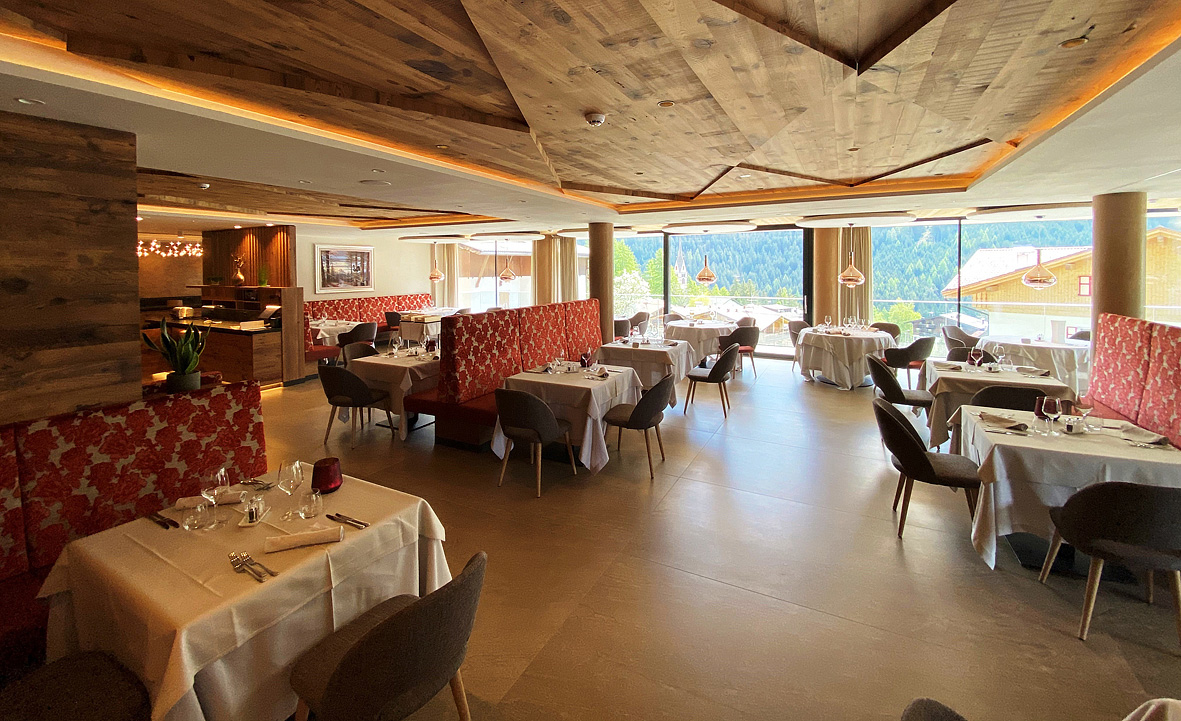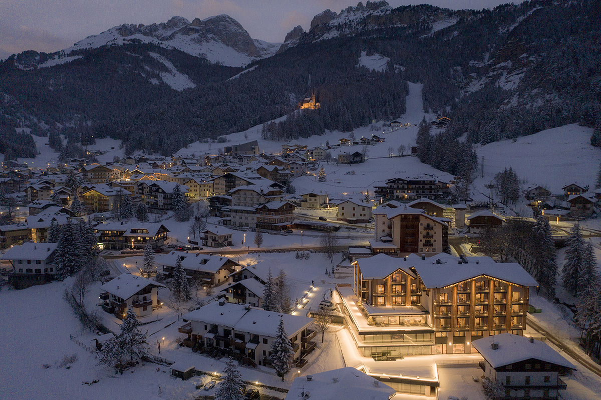 vybavenosť a služby - recepcia, veľká lobby s TV / wi-fi pripojenie k internetu, 2x reštaurácia, bar, vinotéka, seminárna miestnosť s TV, slnečná terasa s posedením, detský kútik, úschovňa lyží a lyžiarok, 2x výťah, hotelový miniskibus, garážové státie (s výnimkou izby Monzoni deluxe 2/3) / nabíjacia stanica* (pomalé do 22 kW)